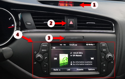 - ژمارە 4 و ئەم بارە چوارگۆشە سوورە بۆ ڕادیۆ و شاشەی ئۆتۆمبێل و چەندین تایبەتمەندی لەخۆدەگرێت وەک جی پی ئێس و کامێرا و هتد هەموو ئۆتۆمبێلەکان ئەم تایبەتمەندییە یان ڕادیۆ و تایبەتمەندییان تێدا نییە