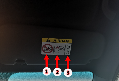 - هێمای ژمارە یەک بۆ ڕێگریکردن لە دانانی کۆرپە لە کورسی پێشەوە ئەگەر باڵۆنەکە چالاک بێت
