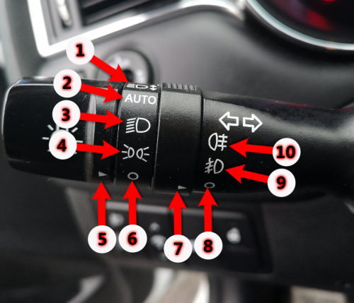 - ژمارە 1 لەکاتی دابەزاندنی ستیکەکە بۆ خوارەوە، تیشکی بەرز چالاک دەبێت و باشتر وایە لە تاریکیدا بەکاربهێنرێت لە غیابی ئۆتۆمبێل یان پاسکیل بەرامبەردا، چونکە تیشکی بەرز دەبێتە هۆی سەرسامییەکی بەهێز بۆ شۆفێری بەرامبەرت