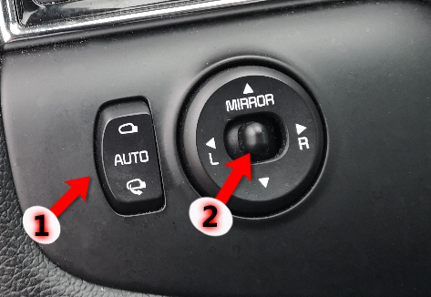 دوگمەی ژمارە 2 لە ناوەڕاستدا، دەتوانیت بیگەڕێنیتەوە بۆ لای ڕاست بۆ کۆنترۆڵکردنی ئاوێنەی لای ڕاست یان بۆ لای چەپ بۆ کۆنترۆڵکردنی ئاوێنە لای چەپ، یان دەتوانیت لە ناوەڕاستدا بیهێڵیتەوە بۆ ئەوەی بەرزی ئاوێنە بۆ سەرەوە و خوارەوە کۆنتڕۆڵ بکەیت، و دەتوانیت ئەم شتانە کۆنتڕۆڵ بکەیت دوای ئاراستەکردنی دوگمەی ناوەڕاست بۆ ئاوێنە دڵخوازەکە بە فشاردان لەسەر تیرە بچووکەکانی پیتی R ڕاست یان L چەپ یان سەرەوە و خوارەوە