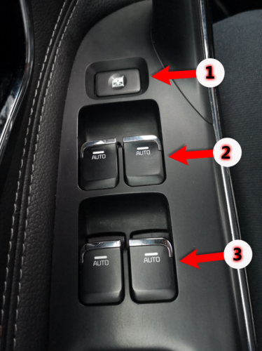 لە ڕێگەی ئەم دوگمانەوە دەتوانیت پەنجەرەی پێشەوە و دواوە بکەیتەوە یان دابخەیت، هەروەها لە هەر پەنجەرەیەکدا یەک دوگمە هەیە لە تەنیشت دەستەی کردنەوەی دەرگاکە بۆ کۆنترۆڵکردنی کردنەوەی یان داخستنی پەنجەرەکە، ئەم وێنەیە بۆ کۆنترۆڵکردنی شۆفێرە وەک… دوگمەکان
